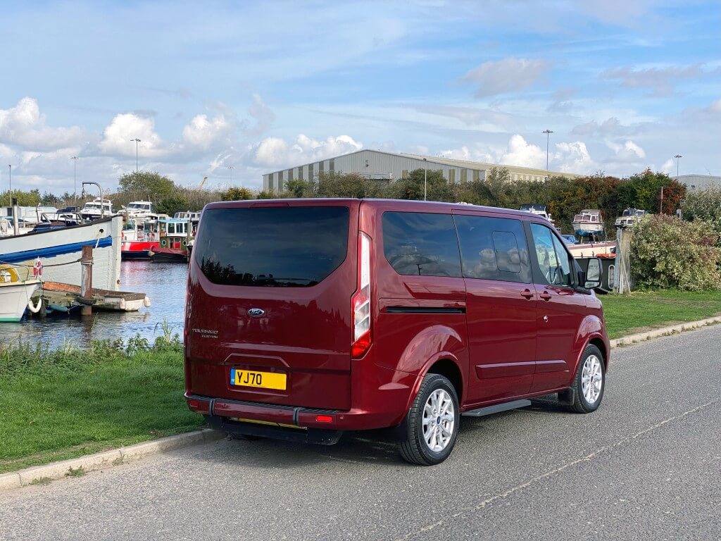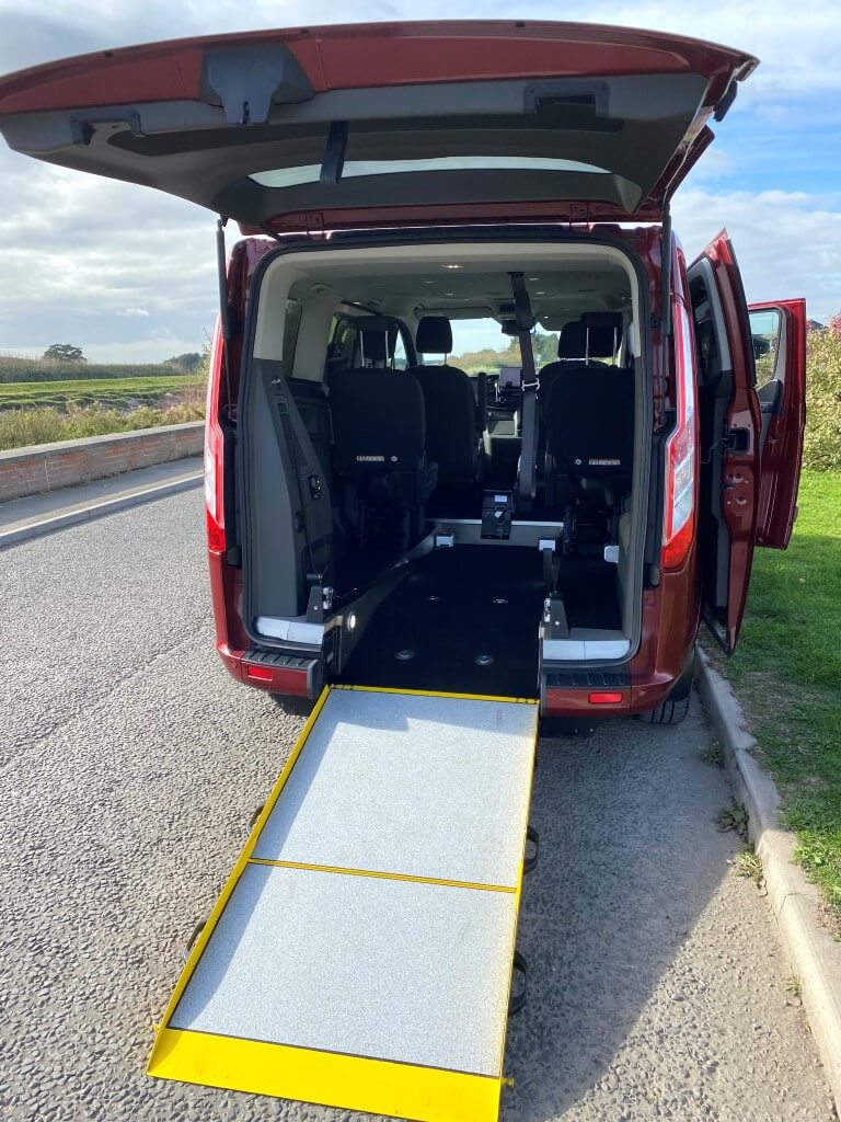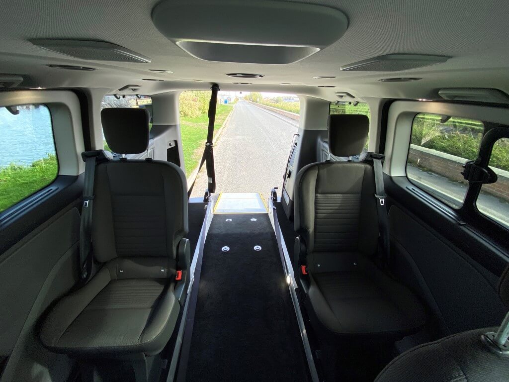 The Ford Tourneo Custom Grandeur raises the bar for travelling in comfort in a medium wheelchair accessible vehicle. The vehicle is equipped with the patented Flexi Ramp system allowing a full-size luggage compartment with no obstructions when the ramp is stowed, or easily unfold the ramp and create ample space for the wheelchair.